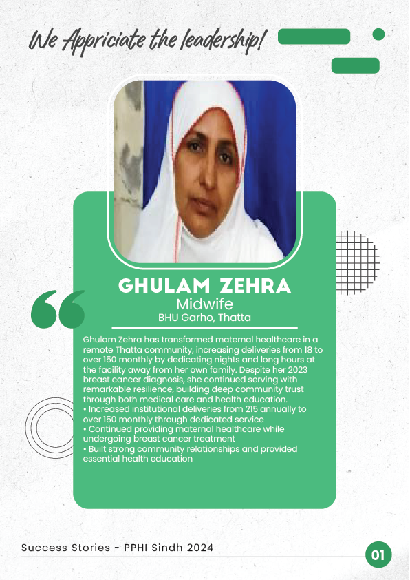 1. Ghulam Zehra - Midwife who increased deliveries from 18 to 150 monthly, even during cancer treatment.