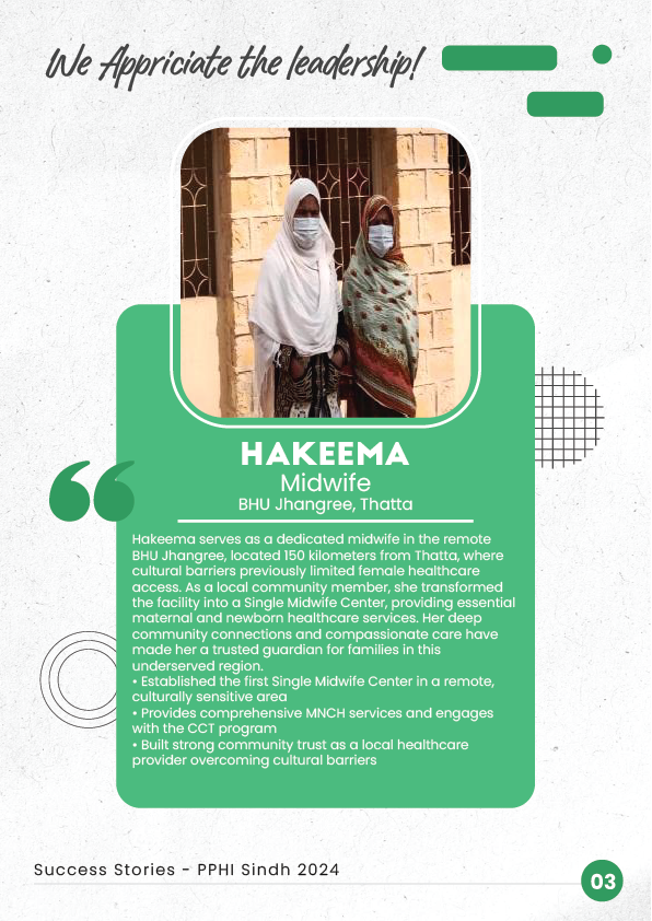 3. Hakeema - Established the first Single Midwife Center in culturally sensitive Thatta.