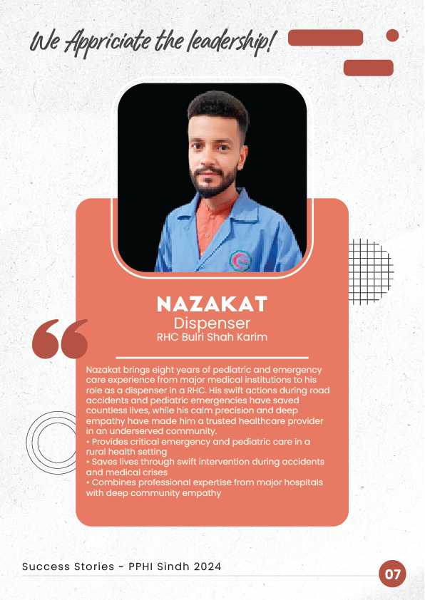 7. Nazakat - Dispenser with 8 years of ER experience, now saving lives in rural RHC Buiri Shah Karim.