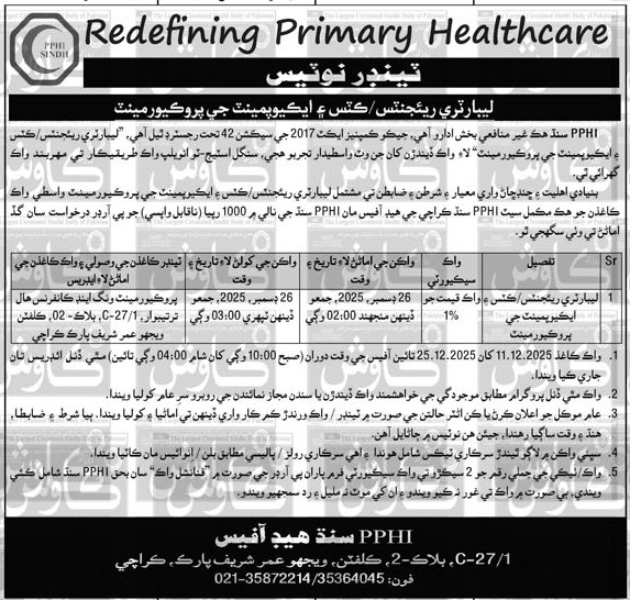 Tender Notice - Procurement of Laboratory Reagents, Equipement & Consumables